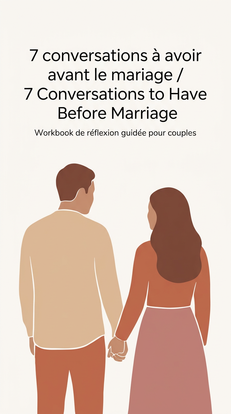 Ce workbook ne cherche pas à rendre votre couple « parfait » ni à vous faire tomber d’accord sur tout. Il vise plutôt à vous aider à mieux vous connaître, à comprendre votre fonctionnement de couple et à repérer les zones où il faudra peut-être ajuster, négocier ou demander de l’aide. Utilisé avec honnêteté et bienveillance, il peut vous aider à poser des bases plus claires et plus solides pour votre avenir commun.
